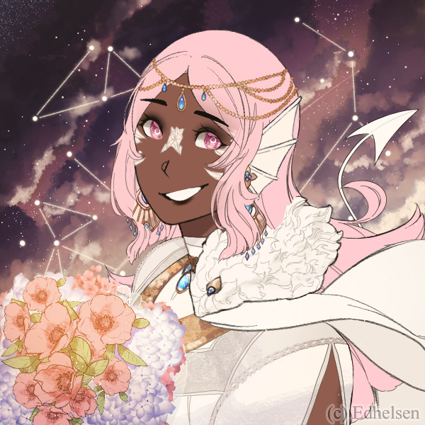 [Vriska's lore features a bit of canon divergence, wherein the Satrap of Radz-at-Han, Ahewann, survived his encounter with the blasphemy. He was however grievously wounded, and during the time his fate was uncertain, Vrtra revealed himself to the people of Thavnair. Seeing they had accepted the dragon, Ahewann felt content to retire from his role as satrap, though remains an advisor and beloved friend to Vrtra.This doesn't have to come up in RP at any point, since Vrtra is still satrap and Ahewann's death, frankly, has had no other narrative impacts to the MSQ. But if the bit of divergence isn't to your liking, you're welcome to move on to other RP. Thanks! ♥]Prior to the tragedy of the Final Days, Vriska lived a simple enough life in Thavnair as an astrologian and court wizard to the satrap of Radz-at-Han. She was known informally as a 'dragon mage', whose responsibilities were largely in reading and interpreting the stars for the betterment of the satrap's alliance with dragonkind.Unbeknownst to the people, Vriska was the illegitimate daughter of Satrap Ahewann bin Alzadaal, who sired her more than twenty summers ago, when he was young and a bit less mature. Despite the illegitimacy of her birth, Ahewann made certain that Vriska and her mother were taken care of. When Vriska's mother passed away some years later, Ahewann would hire Vriska into the Meghaduta as one of his astrologians to secure her financial and housing stability.It was only after a near-mortal injury Ahewann sustained during the rise of the Final Days that the truth of Vriska's heritage would come to light. Thavnair had been governed by the great wyrm Vrtra all along, and the satrap was a valued friend, but, also an easier face to address the public with. As Ahewann's fate remained uncertain, Vrtra legitimized Vriska as the heir apparent of the satrap, allowing her to act in his stead as the crisis of the Final Days carried on.Though Ahewann would survive his gruesome encounter with the blasphemy that nearly felled him, he would be left unable to walk, and he was content to leave the business of governing Thavnair to his dearest friend Vrtra and his daughter Vriska. Ultimately, Vriska's role in Thavnair's leadership did not change much; she remained an astrologian of the satrap, now Vrtra, but the true nature of her work was revealed, in that rather that interpreting the stars for political insight, she and the other dragon mages did so as a means of keeping tabs on Vrtra's disparate siblings across the star.However, Vriska is not bound to the Meghaduta; she can often be seen beyond Radz-at-Han's walls, overseeing (and participating in) the rebuilding efforts across the country. Should any more trouble arise in Thavnair, Vriska is quick to the scene, most recently frequenting the Great Work, where she spends her visits assisting the alchemists there on whatever projects need handling.Strangely, Vriska is ever accompanied by a small dragonet. The creature can usually be found sleeping around her shoulders, and rarely wakes. Vriska cites the little one as a friend of hers, Yll Rhei, who assists her with the reading of stars.