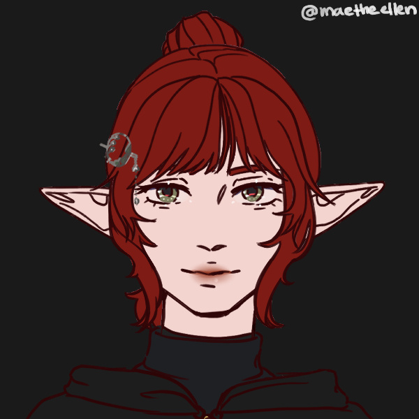 A peculiar young woman who appears to be mixed au ra-elezen, "Elren" doesn't typically divulge her past for the very simple reason that she shouldn't be alive.Her true name is Yll Rhei, a young dragon belonging to Nidhogg's brood. Her life ended at the hands of an elezen man in the reaches of western Coerthas; he slew her and her mother, then stole Yll Rhei's eyes.But that was not the end of the dragonet's story. Suddenly, she awoke in a house, with a body she did not understand. She saw the man standing over her, and swiftly attacked, gouging out his throat with her teeth.Once she got her bearings, Yll Rhei pieced the story together: her mind and soul now occupied the dead body of an elezen girl, though it was changed by her draconic aether. She saw her own eyes placed in the girl's head. Had the man believed she would be revived, and not the dragon to whom they belonged?Regardless, there was a dead man on the floor, and a dead girl covered in his blood. Yll Rhei fled the home, and disappeared into the night. Her strange appearance was a constant disadvantage; every time she was seen by Ishgardians, they would attempt to kill her. An ashkin dragon was probably the worst thing she could be in Coerthas.To most people, anyway. But as a descendant of Nidhogg, Yll Rhei knew there was some she could go to: the maddened men who served the dragons. Joining a group of such men, Yll Rhei was regarded as something of a messiah to them. And through them, Yll Rhei responded to Nidhogg's song, commandeering forces and slaughtering Ishgardians. She hated them for what they'd done to her mother, to herself, and her broodfather's bloodlust tinged her mind.It wasn't until her reign came to an end at the hands of foreign heroes that Yll Rhei, eventually, fled Coerthas for good. Even with the Dragonsong War ended, she resents Ishgard, and has no desire to return to the blood-soaked lands they occupy. Instead, she travels, paying forward the kindness those heroes showed her when they could have killed her.